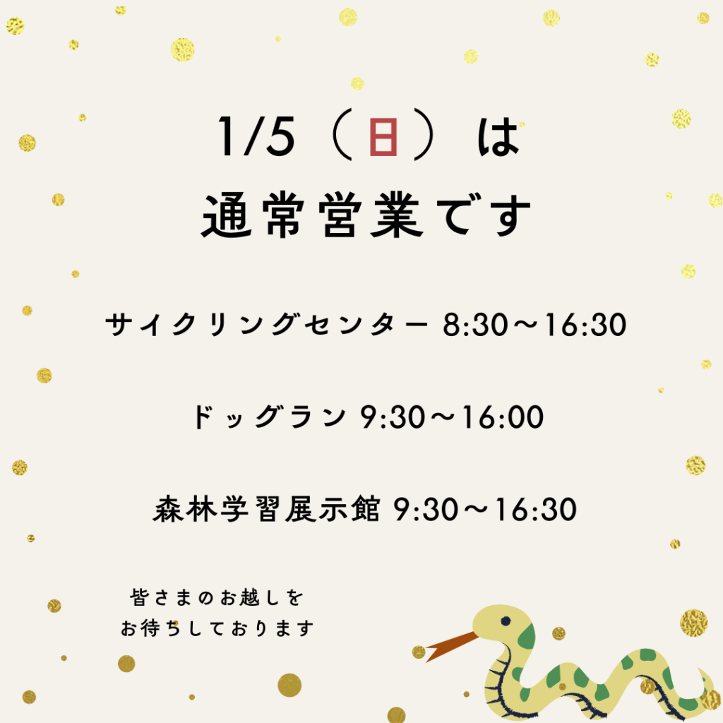〈サイクリングセンター〉〈ドッグラン〉〈森林学習展示館〉の営業は1月5日(日)からです。