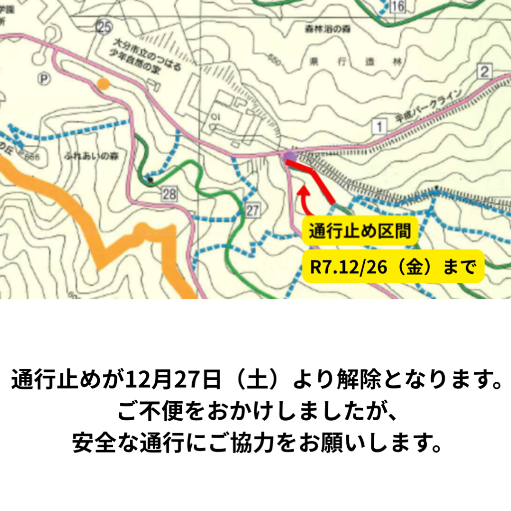 通行止め解除のお知らせ 2025 12/26 通行止めになっていました平成森林公園内の作業道がR7.12/27(土)より解除となります。 ご不便をおかけしましたが、安全な通行にご協力をお願いします。 新着記事 この記事が気に入ったら フォローしてね! Follow Me よかったらシェアしてね!